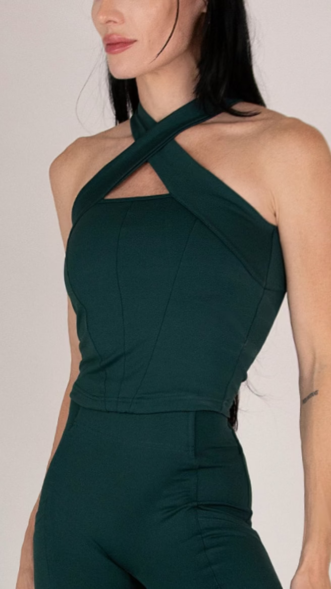 Elevate your wardrobe with this stunning cross-front, cross-back corset-inspired top. Designed with precision, this piece features a sculpting fit with a thick, double-lined fabric that provides support and a sleek silhouette. The structured design creates a refined yet bold aesthetic, perfect for pairing with high-waisted leggings or tailored trousers. Whether you're heading to an upscale dinner, a chic lounge, or simply want to make an impact, this top exudes effortless sophistication.