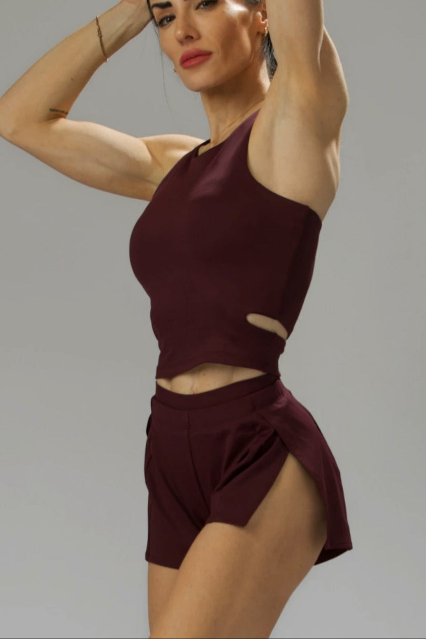 Designed for peak performance and style, this racerback sports bra combines structured support with modern elegance. Featuring a scoop neckline and breathable back slit, it seamlessly transitions from high-intensity training to an elevated athleisure look.