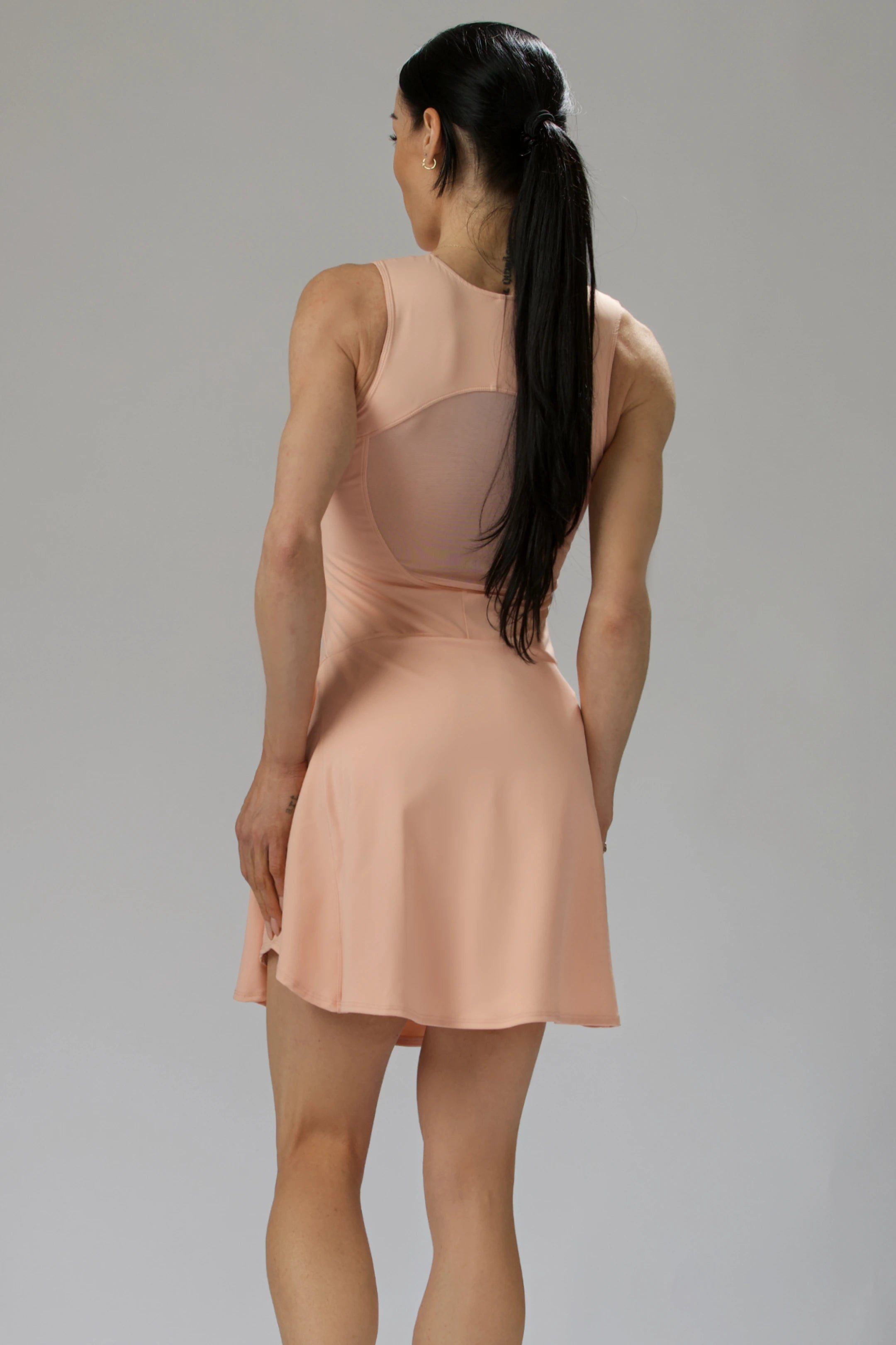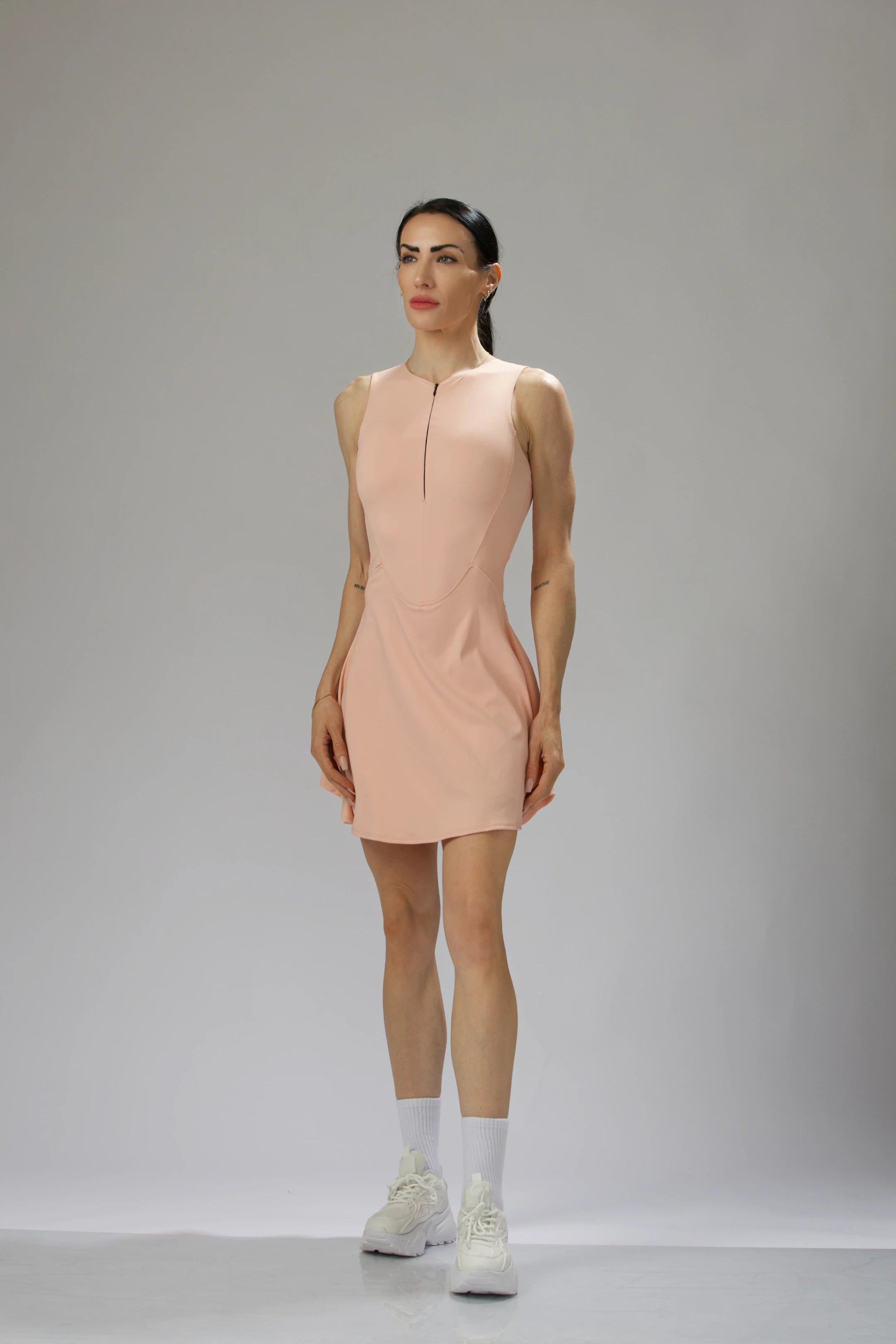 This performance-driven dress blends sleek design with functional details, perfect for both active and casual settings. Thoughtfully constructed with a 1/4 zip front, sleeveless silhouette, and a breathable mesh back, it delivers style and performance in equal measure. Built-in shorts with discreet pockets ensure convenience without compromising elegance, while the fit-and-flowy skirt enhances movement with every step.