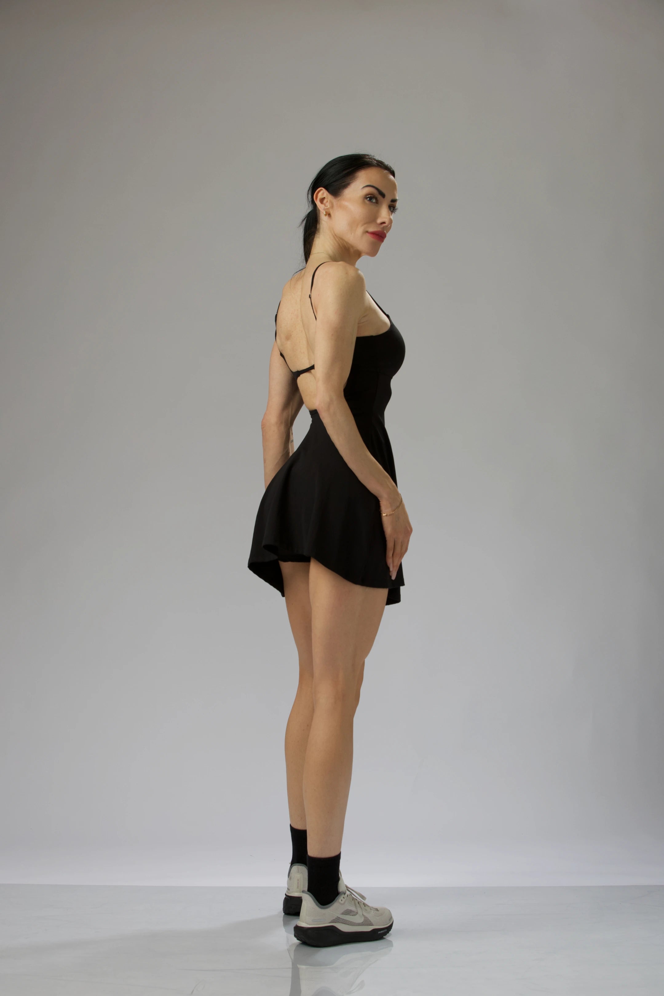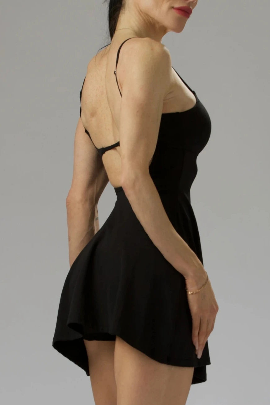 Designed for effortless movement and versatility, this fit-and-flare mini dress blends function with elegance. Featuring built-in shorts, a square neckline, and adjustable straps, it offers both comfort and confidence in every step. Whether worn casually or dressed up, it's the perfect balance of structure and flow.